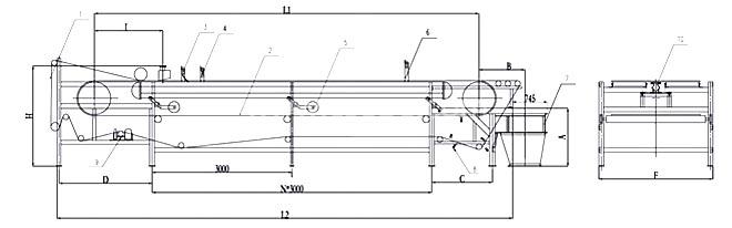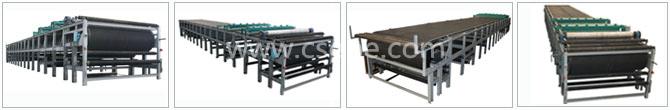 膠帶上支撐裝置采用密性托輥支撐,即在過濾面膠帶兩側(cè)裝有角鐵支撐架,支架上平均布置塑鋼合金托輥,膠帶運(yùn)行在托輥上,可以減少膠帶磨損和驅(qū)動(dòng)阻力,同時(shí)也能夠延長膠帶的使用壽命。